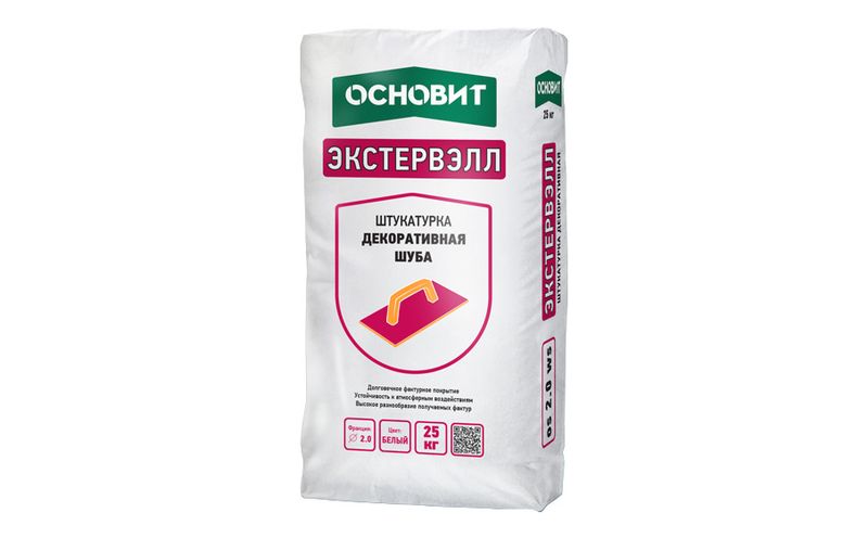 Штукатурка декоративная ОСНОВИТ ЭКСТЕРВЭЛЛ «шуба» применяется в СФТК с жестким креплением утеплителя, придающий системе внешнюю форму и внешний вид, а также обеспечивающий защиту системы от неблагоприятных факторов воздействия окружающей среды. Также применяется для декорирования фасадов и внутренней отделки. Высокая паропроницаемость, легкость и удобство нанесения.